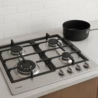 Placa de gas de 60 cm con 4 quemadores. Encendido electrónico. 1 quemador auxiliar de 1 kW 2 quemadores semirrápidos de 1,75 kW 1 quemador triple de 3,5 kW. Preinstalada con GLP e inyector de GN opcional incluido. Medidas Exterior: Ancho: 60 cm x Profundidad: 51 cm Dimensiones para instalación: Ancho: 56 cm x Profundidad: 48 cm