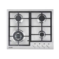 Placa de gas de 60 cm con 4 quemadores. Encendido electrónico. 1 quemador auxiliar de 1 kW 2 quemadores semirrápidos de 1,75 kW 1 quemador triple de 3,5 kW. Preinstalada con GLP e inyector de GN opcional incluido. Medidas Exterior: Ancho: 60 cm x Profundidad: 51 cm Dimensiones para instalación: Ancho: 56 cm x Profundidad: 48 cm